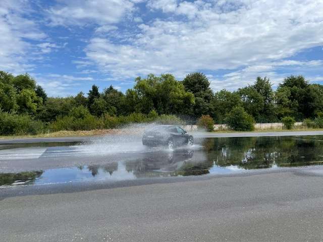 Die Übungen begannen mit einem besonders wichtigen Teil: der Notbremsung. Hierbei wurden verschiedene Szenarien geübt – die Notbremsung aus unterschiedlichen Geschwindigkeiten, auf verschiedenen Fahrbahnbelägen sowie besonders knifflig im Kurvenbereich. Um eine optimale Lenkradbeherrschung zu erlangen, meisterten wir herausfordernde Slalomfahrten und übten auch das Bremsen bzw. Ausweichen vor plötzlich auftauchenden Wasserhindernissen sehr intensiv. Zudem lernten wir die Grenzbereiche in der Kurve kennen.