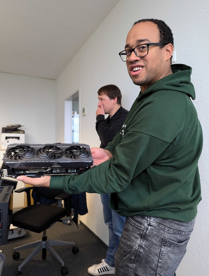 Nach ersten sehr guten Erfahrungen bauen wir nun die Nutzung weiter aus, um das volle Potenzial von Tabby für addmore zu erschließen. So haben wir unseren addmore-KI-Rechner umgebaut und mit einer neuen Grafikkarte, die über ein größeres Language Model (LLM) verfügt, ausgestattet.